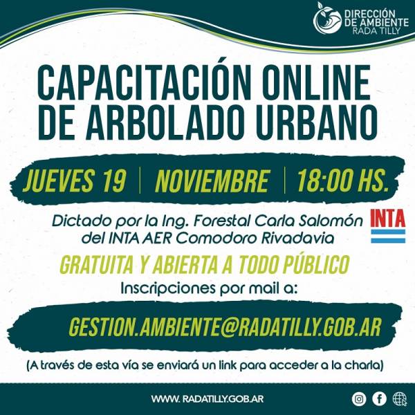 Las inscripciones están abierta para todo público y deben realizarse por mail a: gestion.ambiente@radatilly.gob.ar . A través de esta vía se les enviará un link a los interesados para acceder a la charla.