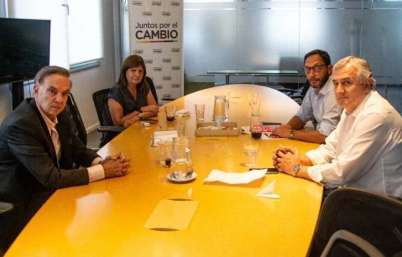 Federico Angelini (titular del PRO), Gerardo Morales (UCR), Maximiliano Ferraro (Coalición Cívica), y Miguel Pichetto (Encuentro Federal) se encont...